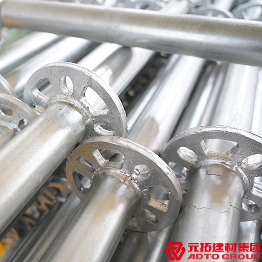元拓盤扣式腳手架是用低壓流體高強度焊管(∮48X3.0-3.75mm),通過二氧化碳保護焊按特定的形狀焊接而成。